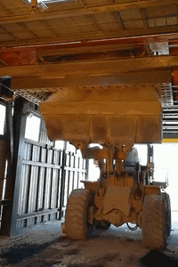 在車道上設(shè)置封閉的卸料區(qū),同時(shí)在成品倉(cāng)卸料口處設(shè)有吸塵管道,裝料車在封閉卸料區(qū)內(nèi)卸料,產(chǎn)生的藍(lán)煙和粉塵利用燃燒器風(fēng)機(jī)引入燃燒器進(jìn)行二次燃燒,解決煙塵外溢問(wèn)題。