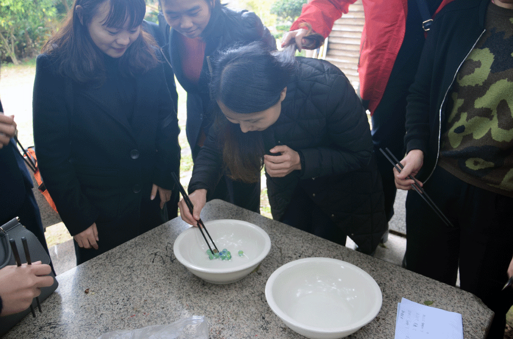中午稍作休息后,一行人便沐浴著春光,乘車前往目的地。這里青山環(huán)繞,綠水細(xì)流,不經(jīng)意間就會(huì)發(fā)現(xiàn)有趣的小東西。一進(jìn)門,特意休整的草地便吸引了眾人眼球,于是,緊張又充滿歡樂的游戲就開始了。