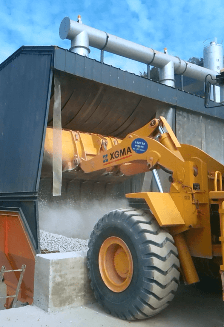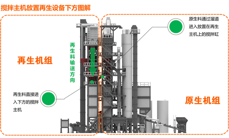 5.攪拌主機設置在再生設備正下方,使高溫RAP可直投進入攪拌主機中。此項技術為鐵拓機械2010年專利技術(鐵拓機械專利號:ZL 2010 2 0119177.0)。經(jīng)過鐵拓機械工程師近十年來的實際應用驗證,此項技術完全解決了高摻配比狀態(tài)下高溫再生料黏附輸送設備和投料速度慢的問題。為行業(yè)共性難題提供了完美的解決方案。