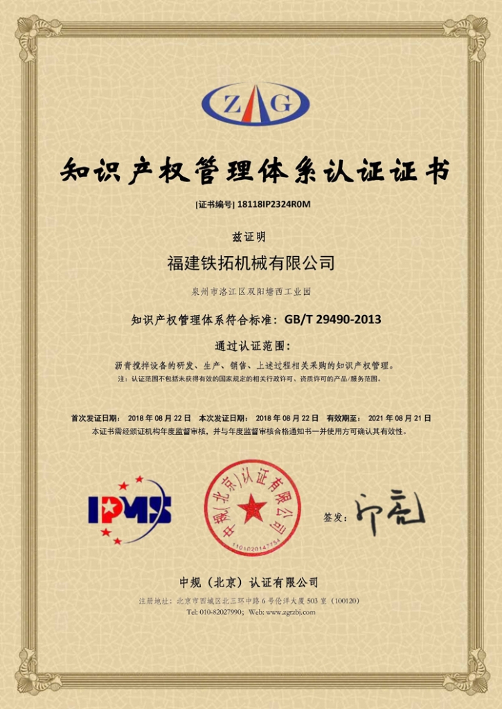 鐵拓機(jī)械順利通過“知識(shí)產(chǎn)權(quán)管理體系認(rèn)證”
