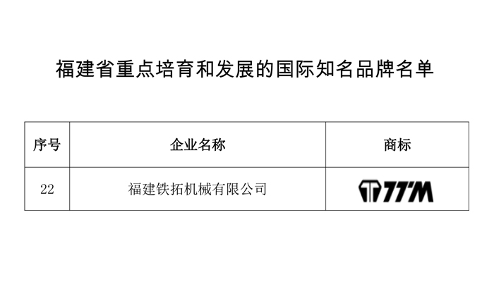 鐵拓機械入選“福建省重點培育和發(fā)展的國際知名品牌”名單