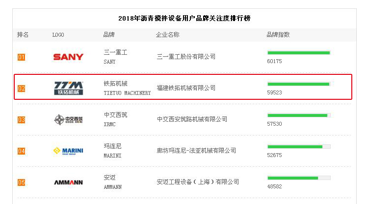 【瀝青攪拌設(shè)備】品牌關(guān)注度排行榜發(fā)布,鐵拓機(jī)械位列10強(qiáng)榜單!